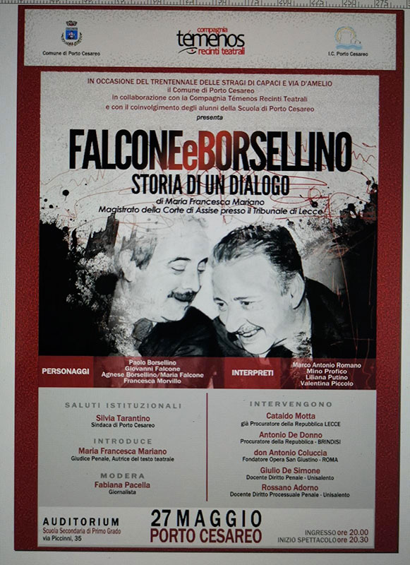 Porto Cesareo ricorda Falcone e Borsellino con spettacolo teatrale e dibattito