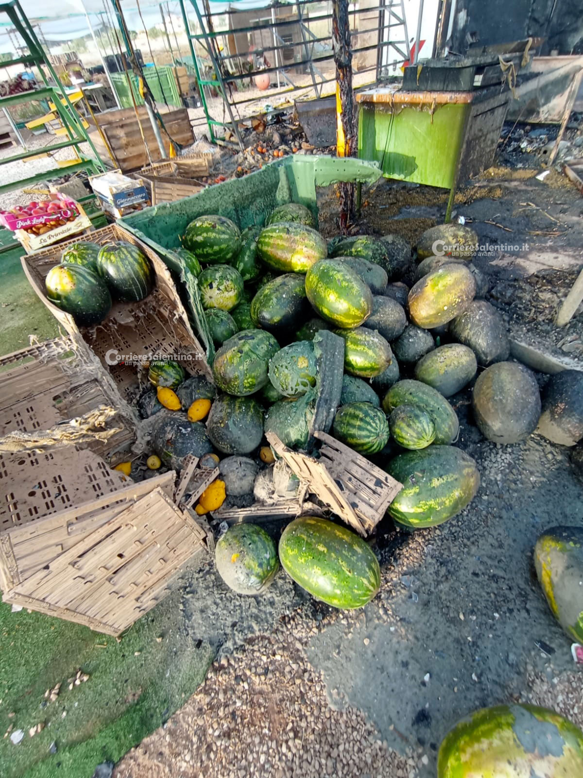 HomeCronacaIn fiamme un chiosco di prodotti ortofrutticoli, due vigili del fuoco restano...