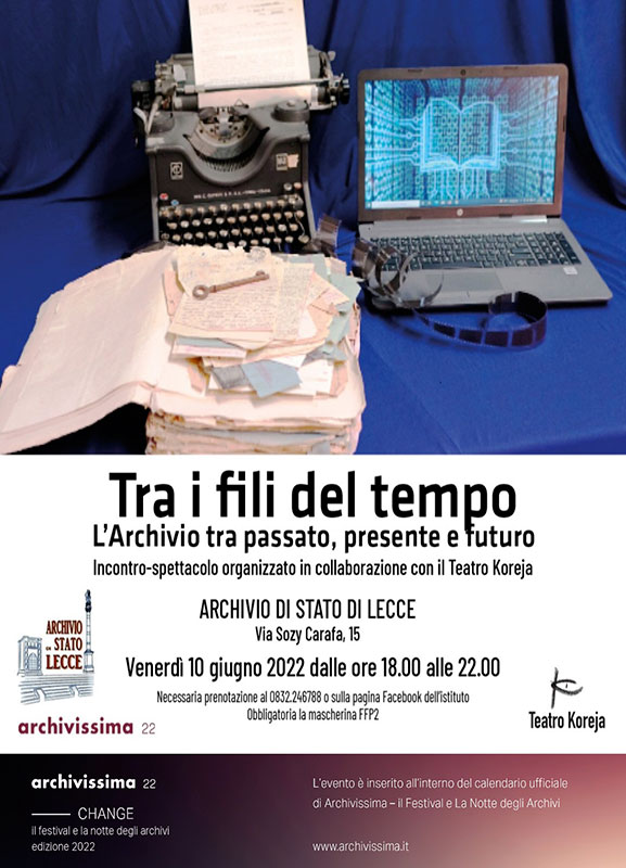 L’Archivio di Stato e il Teatro Koreja insieme per la Notte degli Archivi, “Tra i fili del tempo” apertura straordinaria riservata a 45 spettatori