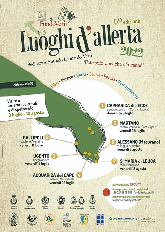 HomeCulturaVenerdì 15 a Ugento, terza tappa dei Luoghi d'Allerta del Fondo Verri...