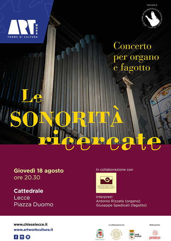 Giubileo oronziano, gli eventi culturali della diocesi con il sostegno di ArtWork. Domani sera in Cattedrale concerto per organo e fagotto