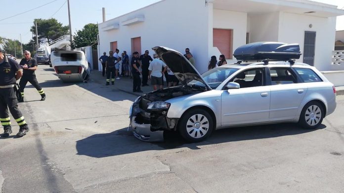 Schianto all’incrocio e un’auto si ribalta: feriti lievi