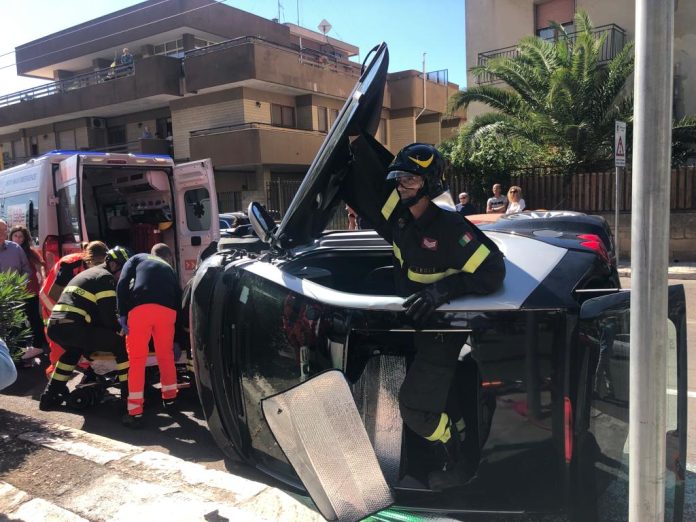 Schianto sul viale, Smart ribaltata: corsa in ospedale per una donna rimasta incastrata nell’auto
