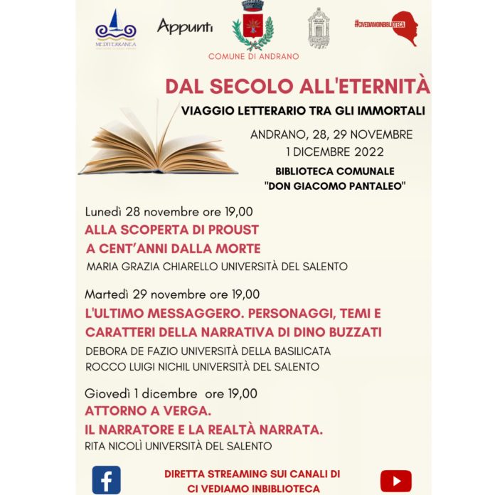 “Dal Secolo all’Eternità”, viaggio letterario tra gli Immortali ad Andrano