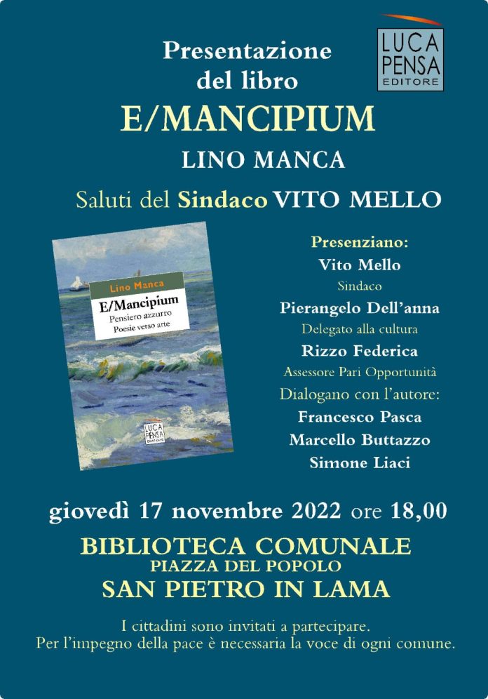 E/mancipium il libro di Lino Manca sarà presentato a San Pietro in Lama giovedì 17 novembre