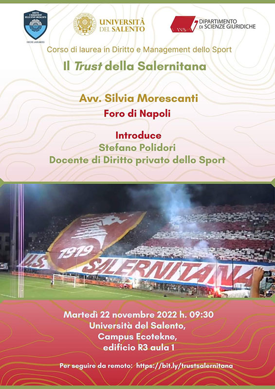 UniSalento. Dipartimento di Scienze Giuridiche: “Il trust della Salernitana”