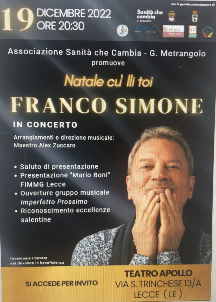 “Natale cu lli toi”, lunedì Franco Simone in concerto al teatro Apollo di Lecce