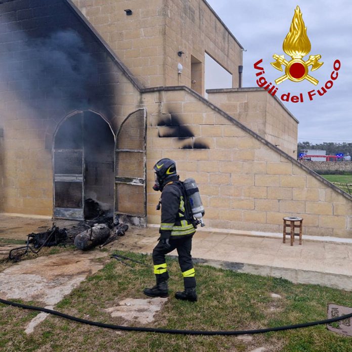 Fiamme all’alba in periferia, brucia un deposito con all’interno attrezzi agricoli: si indaga sulle cause
