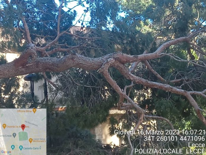 Vento forte, albero di pino cade nella Villa Comunale già chiusa per precauzione