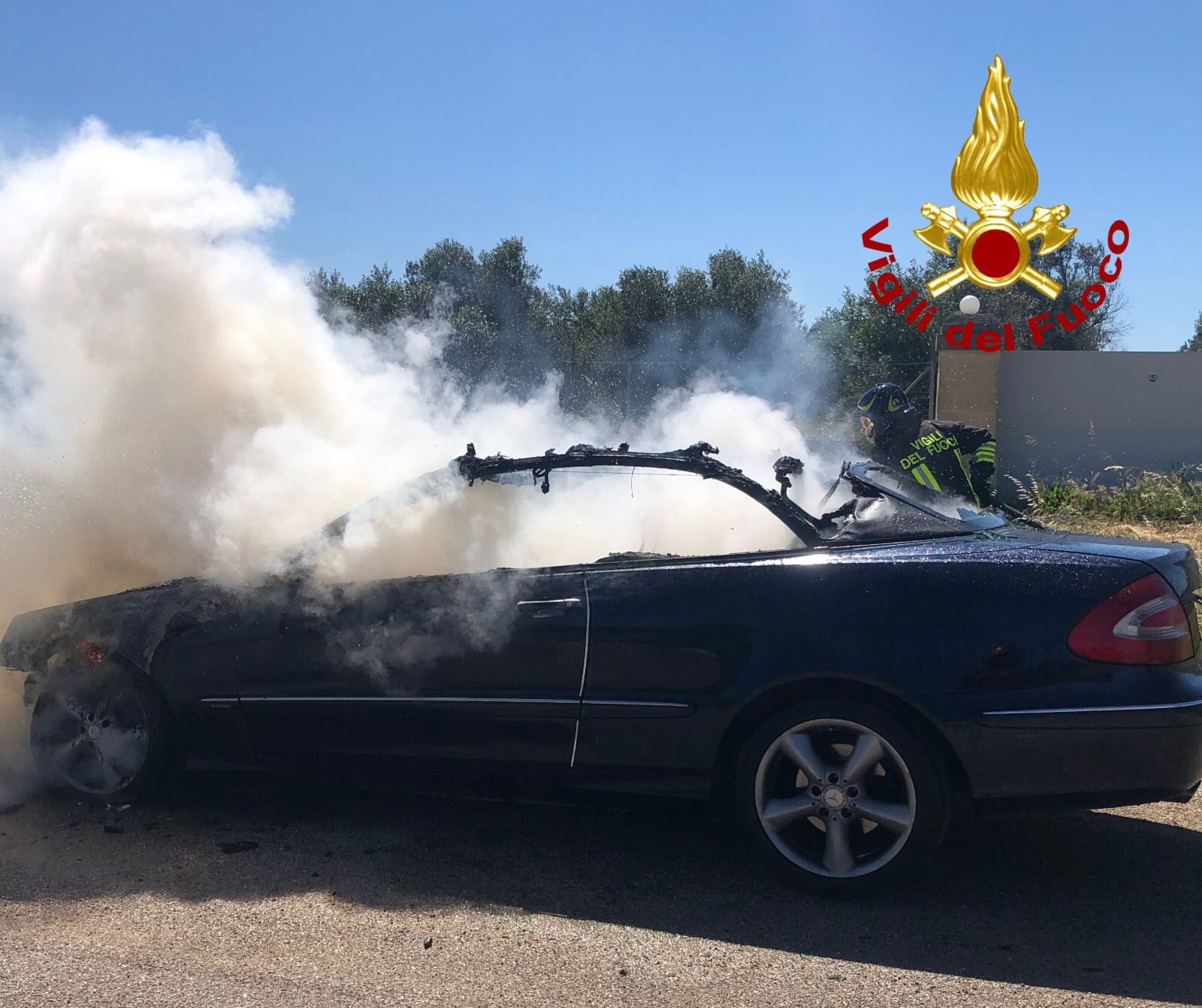 Fumo dal vano motore mentre è in marcia: auto distrutta dalle fiamme in città