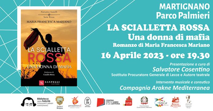 Presentazione “La Scialletta rossa – Una donna di mafia” di Maria Francesca Mariano, domenica 16 aprile al Parco Palmieri di Martignano