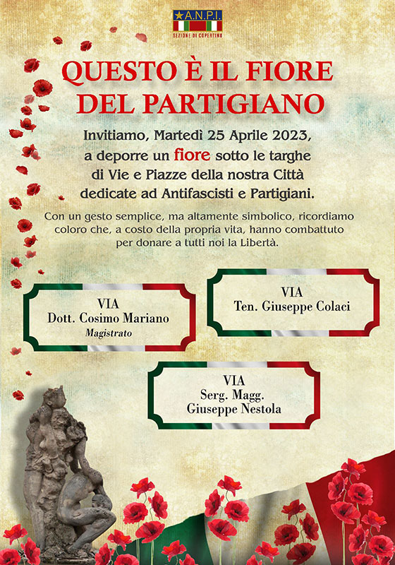 Questo è il fiore del partigiano: la città di Copertino celebra il 25 aprile, data simbolo della caduta del nazifascismo e i 75 anni della nostra Costituzione