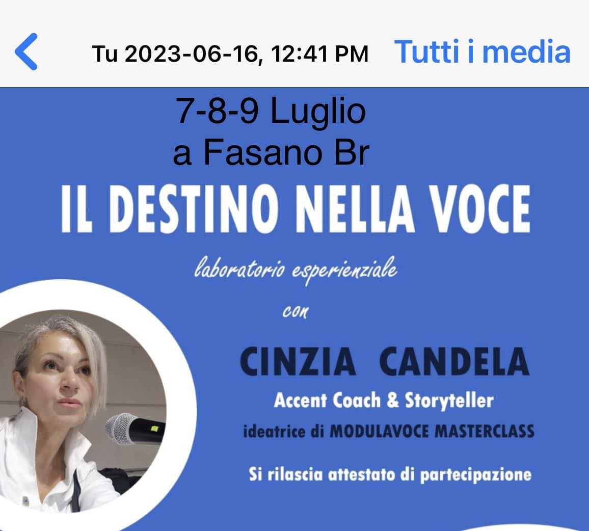 Cinzia Candela torna in Puglia con il nuovo “laboratorio esperienziale” dedicato alle strategie che mirano all’approfondimento della conoscenza del “potere della voce”