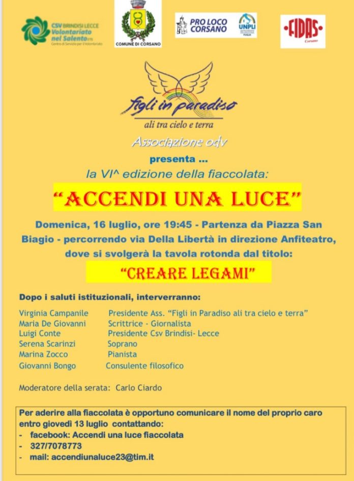‘Accendi una Luce’ la IV edizione della fiaccolata dell’associazione figli in Paradiso accende Corsano