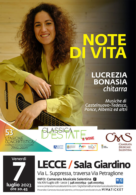 HomeLo spazio dei suoni"Classica d'Estate...& wine", venerdì 7 luglio Lucrezia Bonasia a Lecce