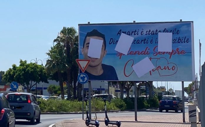 Oscurato il manifesto in memoria di un 23enne, il web si scatena. Il sindaco: “Era abusivo, indelicato coprire il volto”