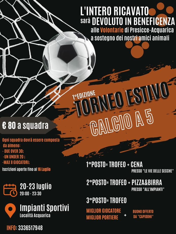 Prima edizione del Torneo Estivo calcio a 5, ricavato alle volontarie per il sostegno degli amici animali