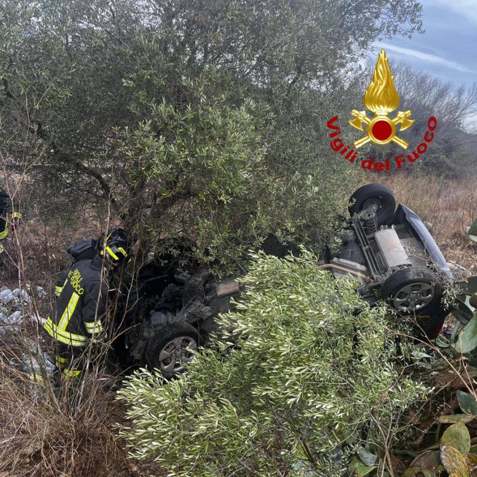 Incidente in periferia: un’auto finisce fuori strada e si ribalta. Tre feriti