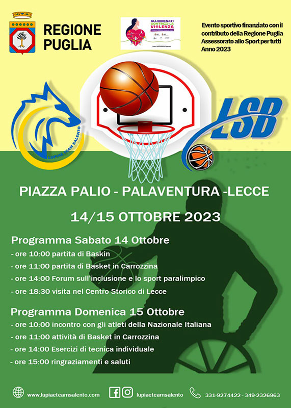 Lupiae Team Salento ed inclusione: il 14 ed il 15 ottobre saranno le giornate del basket per tutti