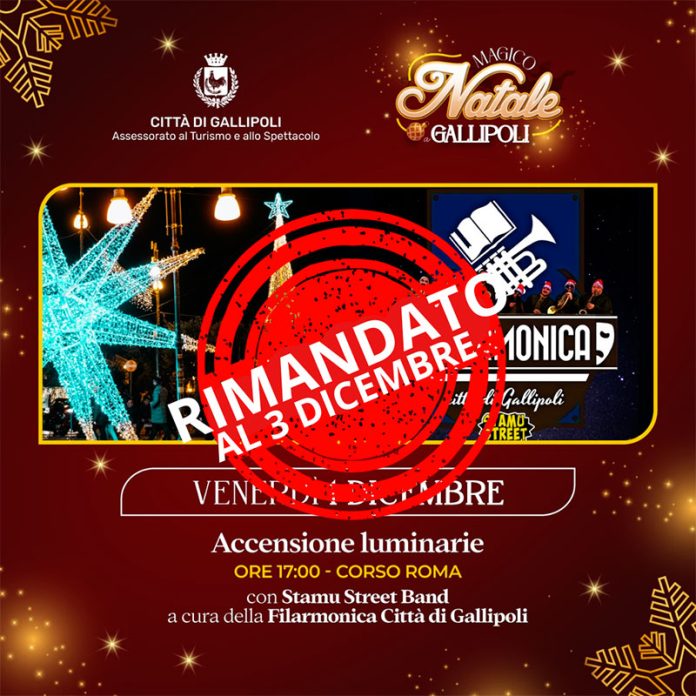 Magico Natale a Gallipoli, rinviata a domenica 3 dicembre l’accensione delle luminarie