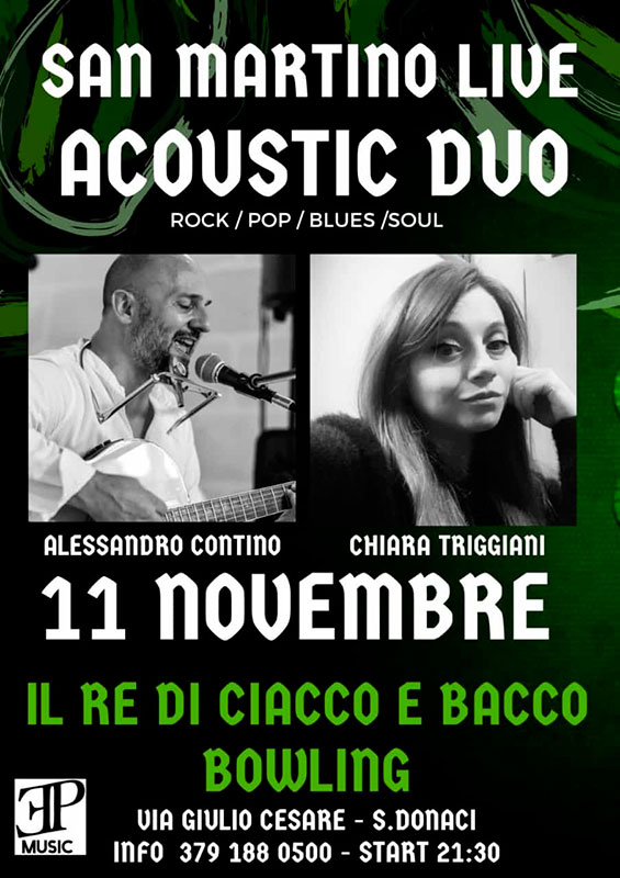 San Martino live acoustic duo di Chiara Triggiani e Alessandro Contino ad “Il Re di Ciacco e Bacco Bowling”
