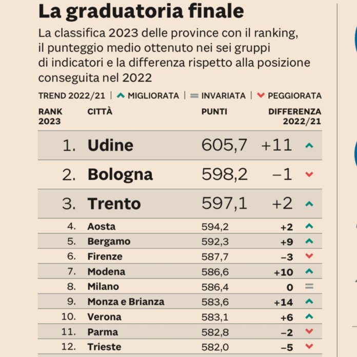 Qualità della vita: Lecce sale al 71º posto, ma resta dietro a Bari. Le prime cinque: Udine, Bologna, Trento, Aosta e Bergamo. Brindisi al 100º