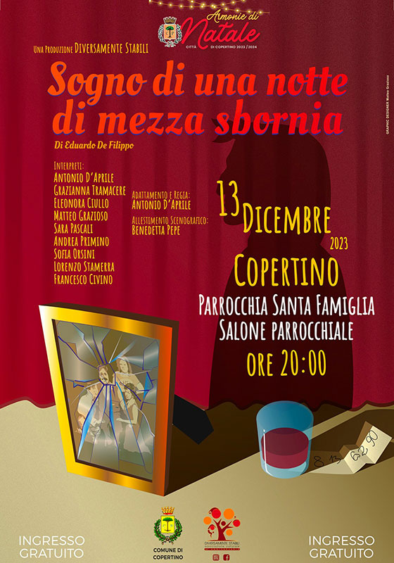 Questa sera “Sogno di una notte di mezza sbornia” Teatro Parrocchia Santa Famiglia di Copertino