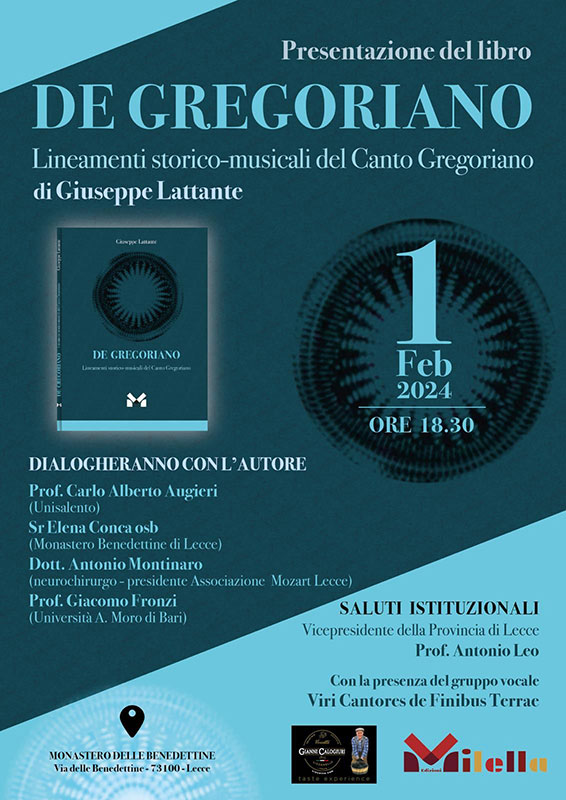 HomeCulturaGiovedì 1 febbraio presentazione del libro 'De Gregoriano' di Giuseppe Lattante