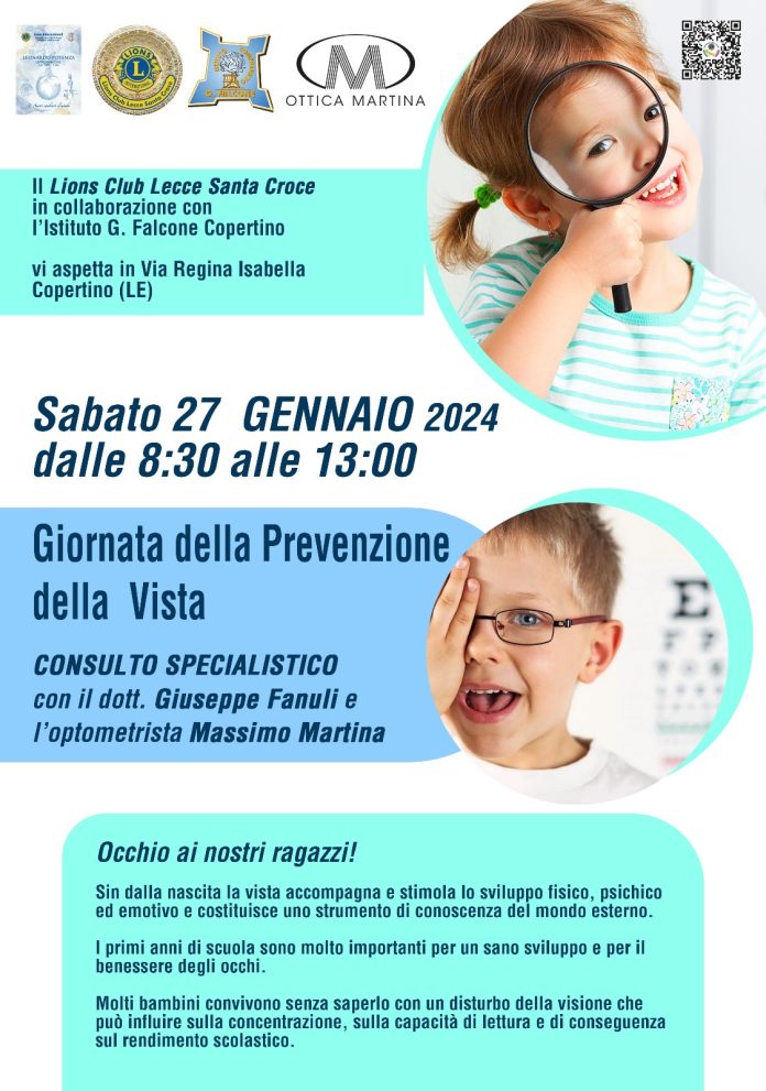 Sabato 27 gennaio la “Giornata della Prevenzione della Vista”, iniziativa del Lions Club Lecce Santa Croce
