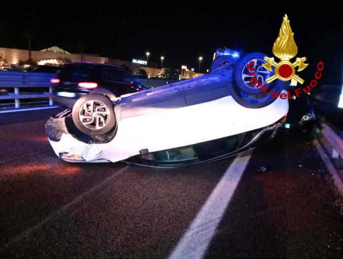 HomeCronacaIncidente sulla statale: scontro tra due auto, una si ribalta. Illesi gli...