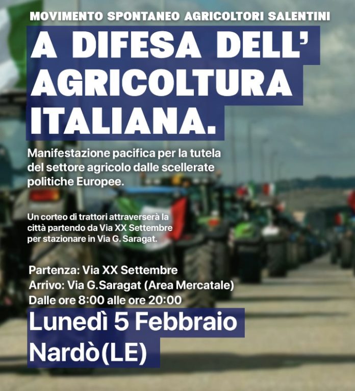 Lunedi 5 Gennaio 2024 agricoltori pronti alla protesta anche a Nardò