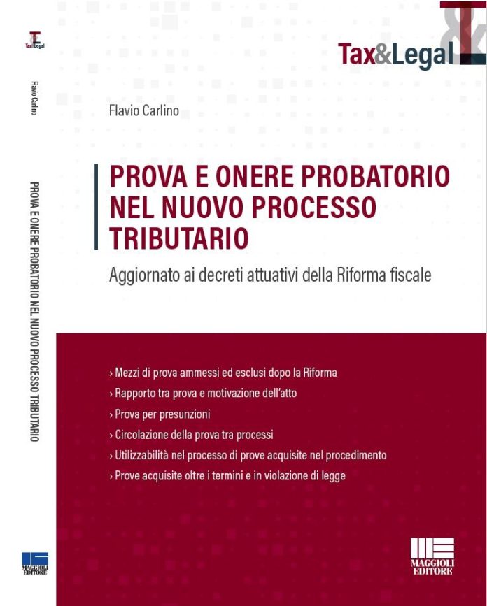 “Prova e onere probatorio nel nuovo processo tributario”, esce oggi il nuovo libro di Flavio Carlino, edito da Maggioli
