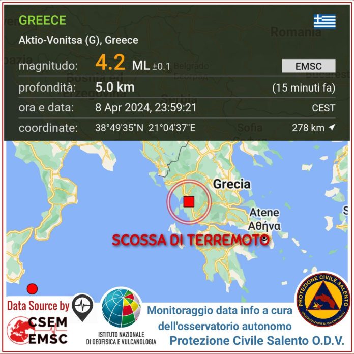 HomeAmbienteForte terremoto nella Grecia occidentale: scossa avvertita anche nel basso Salento, paura...