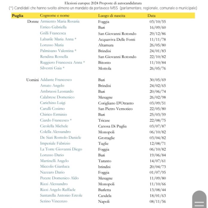 M5S, ecco i nomi in corsa per la lista delle europee: il giornalista Mimmo Carulli tra i leccesi. C’è la brindisina Valentina Palmisano