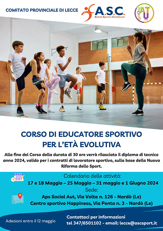 Corso di “Educatore Sportivo per l’età evolutiva” a Nardò