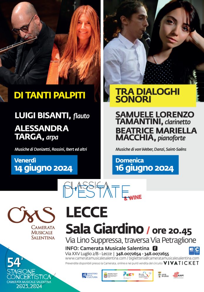 Luigi Bisanti e Alessandra Targa, flauto e arpa inaugurano “Classica d’Estate… & wine” a Lecce