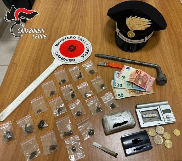 Continuano i controlli dei carabinieri in tutto il Salento. Droga, contanti e una piantagione di marijuana casalinga: in due nei guai