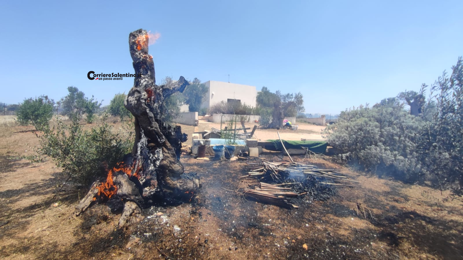HomeCronacaPaura nelle campagne del Salento: ulivi in fiamme a pochi passi dalle...