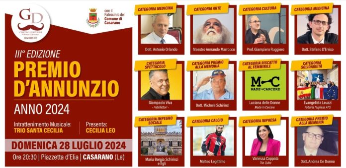 HomeCulturaTorna a Casarano il Premio D’Annunzio, appuntamento fisso nel calendario della...