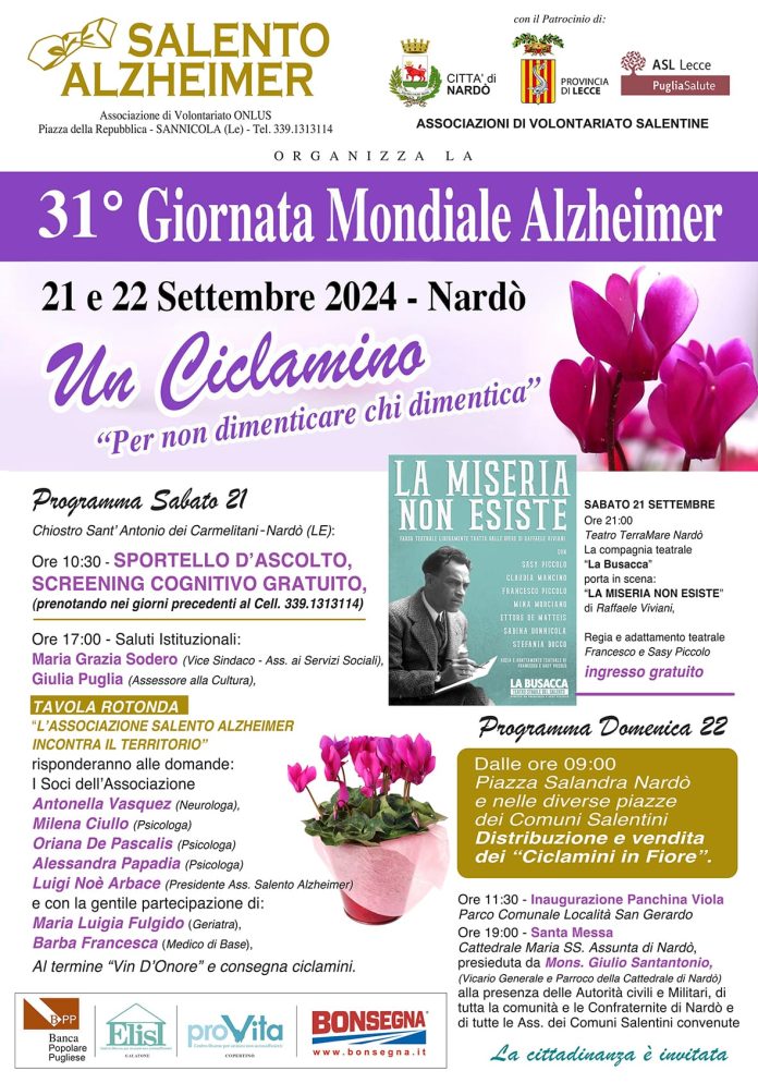 Giornata mondiale dell’Alzheimer: tavola rotonda e tante altre iniziative in programma a Nardò