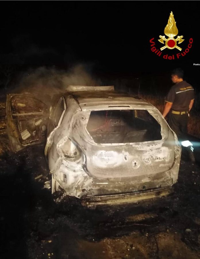 Misterioso incendio nella notte: a fuoco un’auto rubata in aperta campagna. Indagini in corso