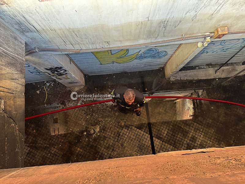 Fiamme in un garage alla periferia di Lecce, evacuato un condominio