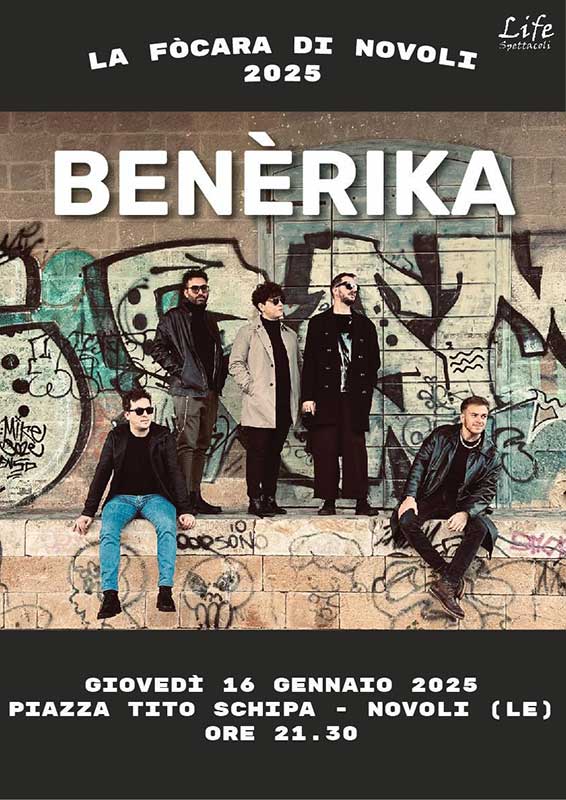 I Benerika domani sera in Piazza Tito Schipa a Novoli accendono con le loro canzoni la Focara di Sant’Antonio Abate