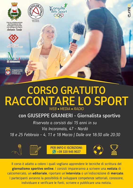 Nardò, al via il corso gratuito “raccontare lo sport” con Giuseppe Granieri