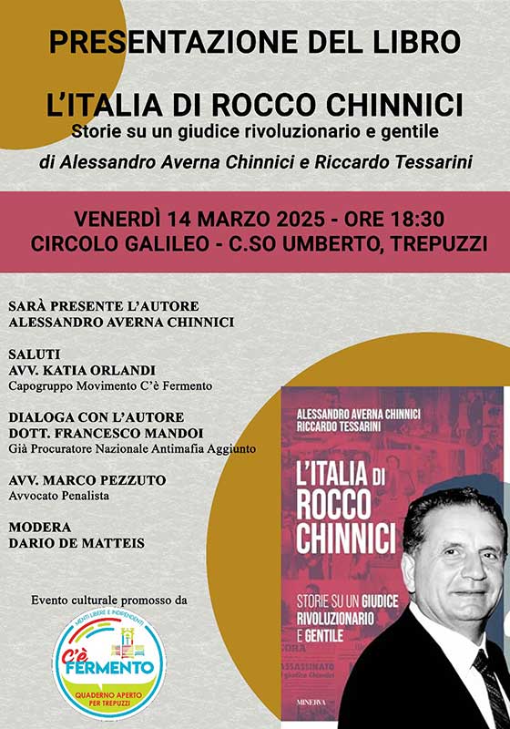Venerdì 14 marzo presentazione del libro “L’Italia di Rocco Chinnici. Storie su un giudice rivoluzionario e gentile”