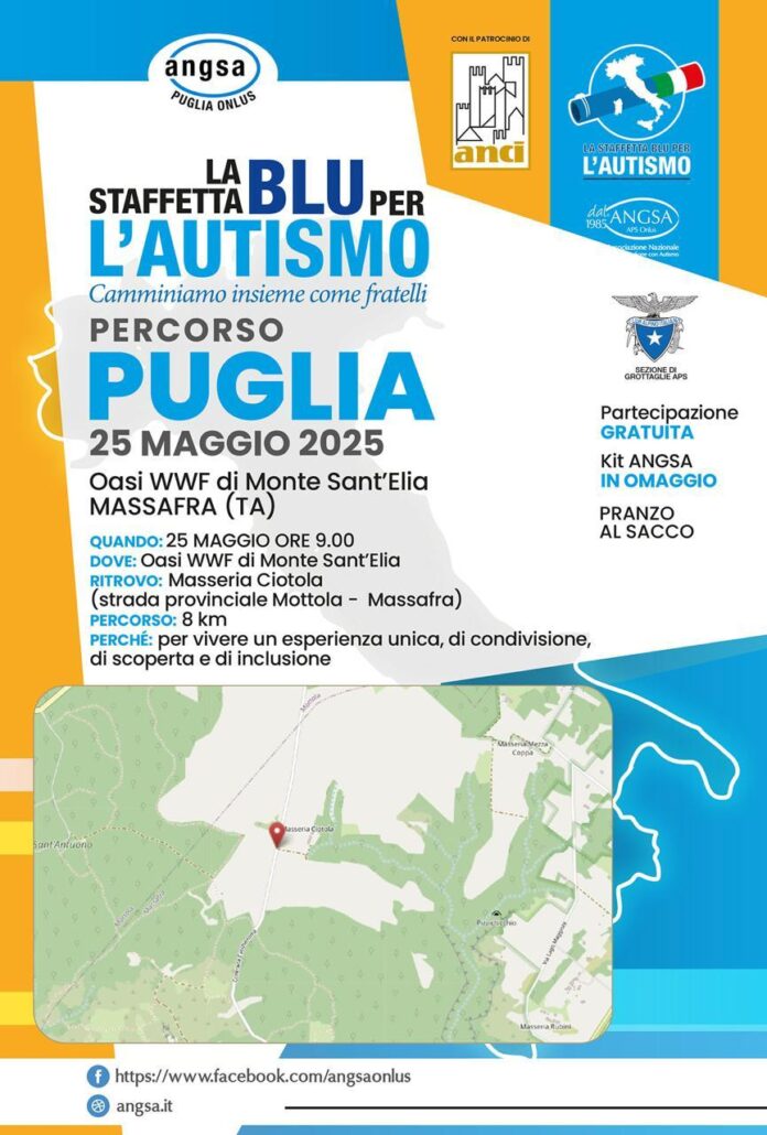 HomeAttualità"La staffetta blu per l'autismo", domenica 25 maggio la quinta tappa del...