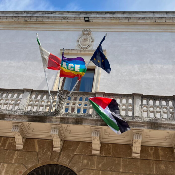 Le bandiere della pace e palestinese sventolano sul Comune di Carmiano. Il Sindaco Erroi: “L’Amministrazione sposa pienamente questa richiesta di pace nata dalla comunità”