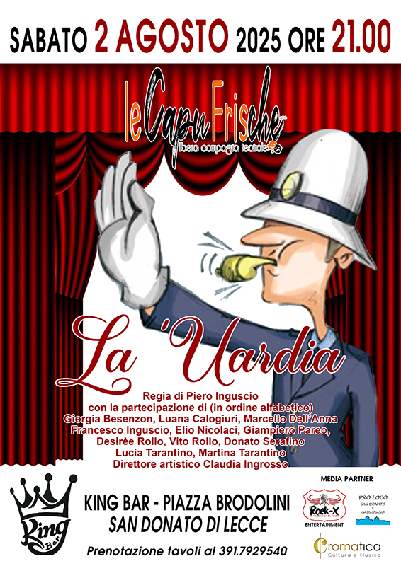 HomeSpettacoliLe CapuFrische con la commedia "La 'Uardia" il 2 Agosto a San...