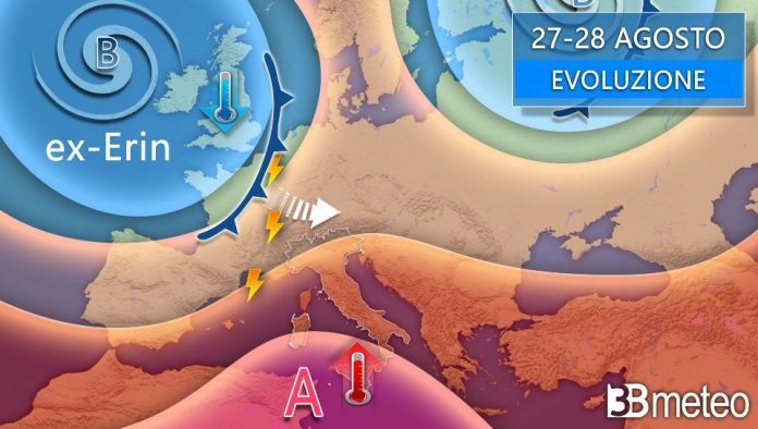 L’ex uragano Erin in rotta verso l’Europa. Italia contesa tra forte maltempo e caldo intenso
