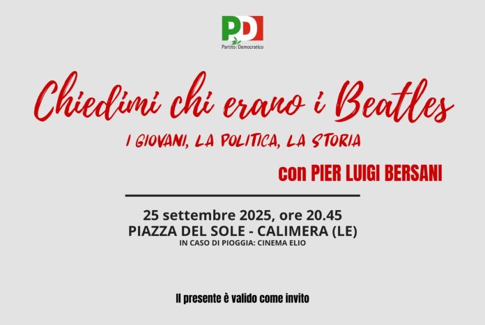 Bersani giovedì a Calimera: “Chiedimi chi erano i Beatles. I giovani, la politica, la storia”